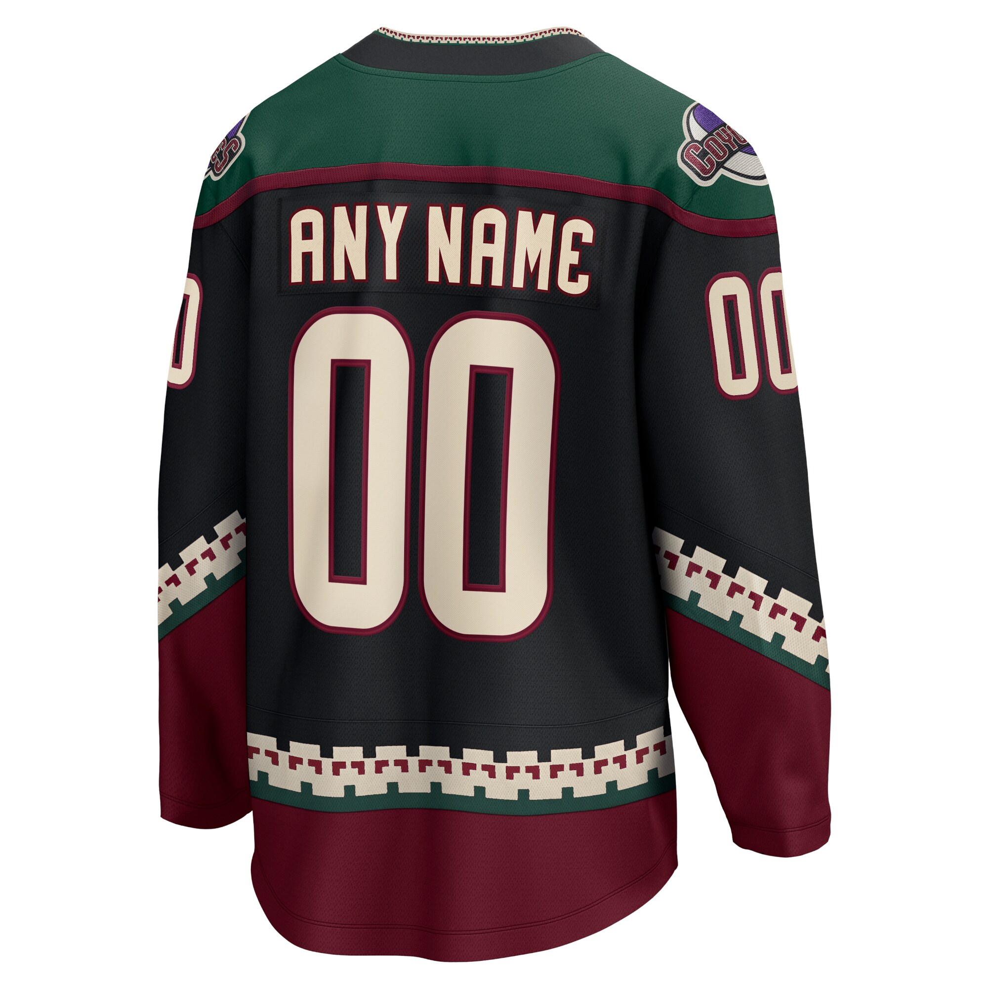 We want fans to celebrate their fandom by customizing and personalizing certain products. For these customizable products, including jerseys, we invite customers to tell us how they would like their preferred name or other text to appear by typing that text into the field indicated. However, just because a customer is able to type proposed customization text into the field and is able to complete the order through the website, not all proposed customization text will be accepted. Please note, Fanatics may reject and cancel any customization order for any reason, including for messages that are deemed offensive or inappropriate. Put your Arizona Coyotes fandom on display in the best way with this incredible 2021/22 Breakaway Custom Jersey from Fanatics Branded. It's built with crisp graphics to show off your spirit from any angle and innovative performance technology for the perfect fit and feel. It's not Arizona Coyotes game day until you pull on this sweet jersey.