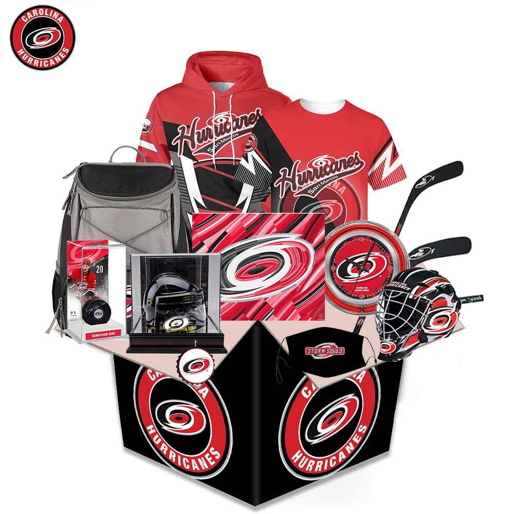 What's in the box During the festival, a limited number of Carolina Hurricanes-related products will be sent randomly. Including hoodie, Billiard Light, Mini Composite Hockey Stick, cups, headphones, Goalie Mask, Game Puck, AirPods case, iPhone case, puzzles, hats, 15'' Neon Clock, and other products. (The box is worth more than $100).? All items are sent as gifts related to Carolina Hurricanes.