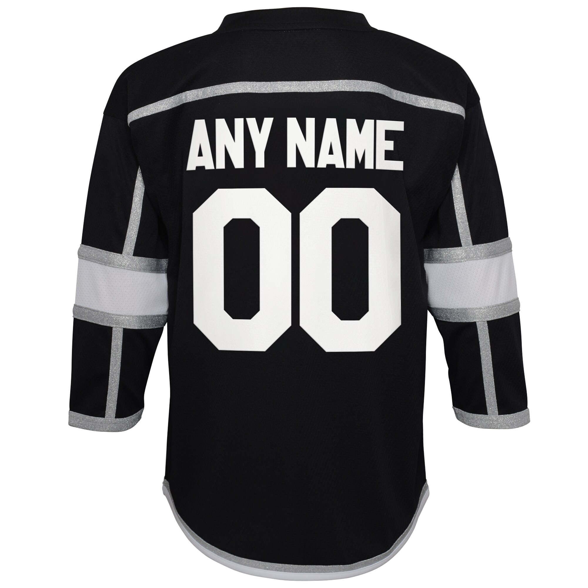 We want fans to celebrate their fandom by customizing and personalizing certain products. For these customizable products, including jerseys, we invite customers to tell us how they would like their preferred name or other text to appear by typing that text into the field indicated. However, just because a customer is able to type proposed customization text into the field and is able to complete the order through the website, not all proposed customization text will be accepted. Please note, Fanatics may reject and cancel any customization order for any reason, including for messages that are deemed offensive or inappropriate.This Los Angeles Kings Home Replica Custom Jersey is a must have for your young fan. Their fandom will be on full display when they sport this jersey. Featuring bold Los Angeles Kings graphics, it's the perfect addition to their growing collection.