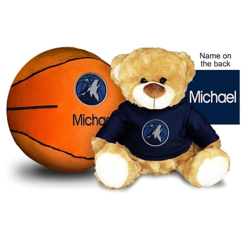 Minnesota Timberwolves 10'' Personalized Plush Bear & Basketball Set - Navy