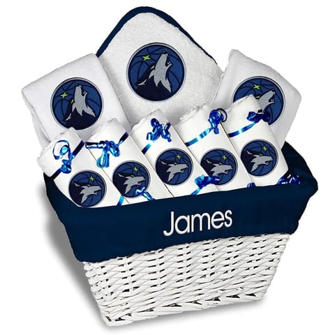 Minnesota Timberwolves Newborn & Infant Personalized Large Gift Basket - White