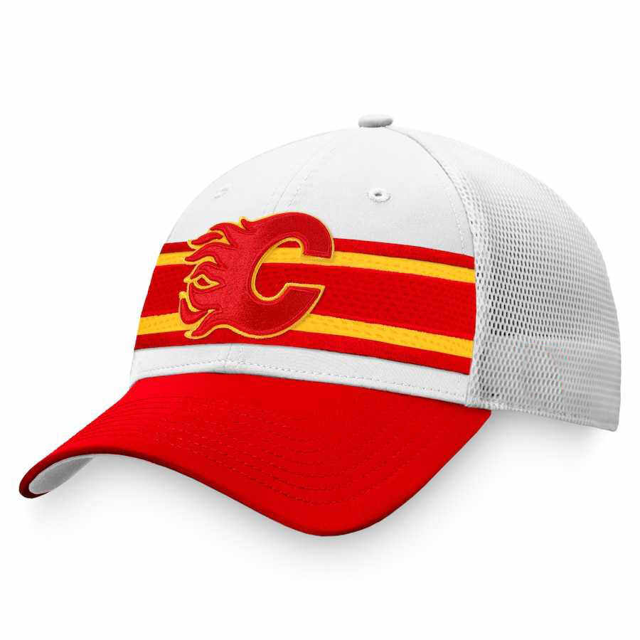 Men's Calgary Flames WhiteRed 2021 Draft Authentic Pro On Stage Trucker Snapback Hat