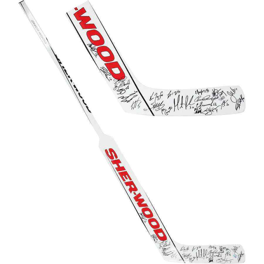Autographed New Jersey Devils 2000 Stanley Cup Champions Martin Brodeur Sher-wood GS650 Game Model Goalie Stick with 20 Signatures - Limited Edition of 20.