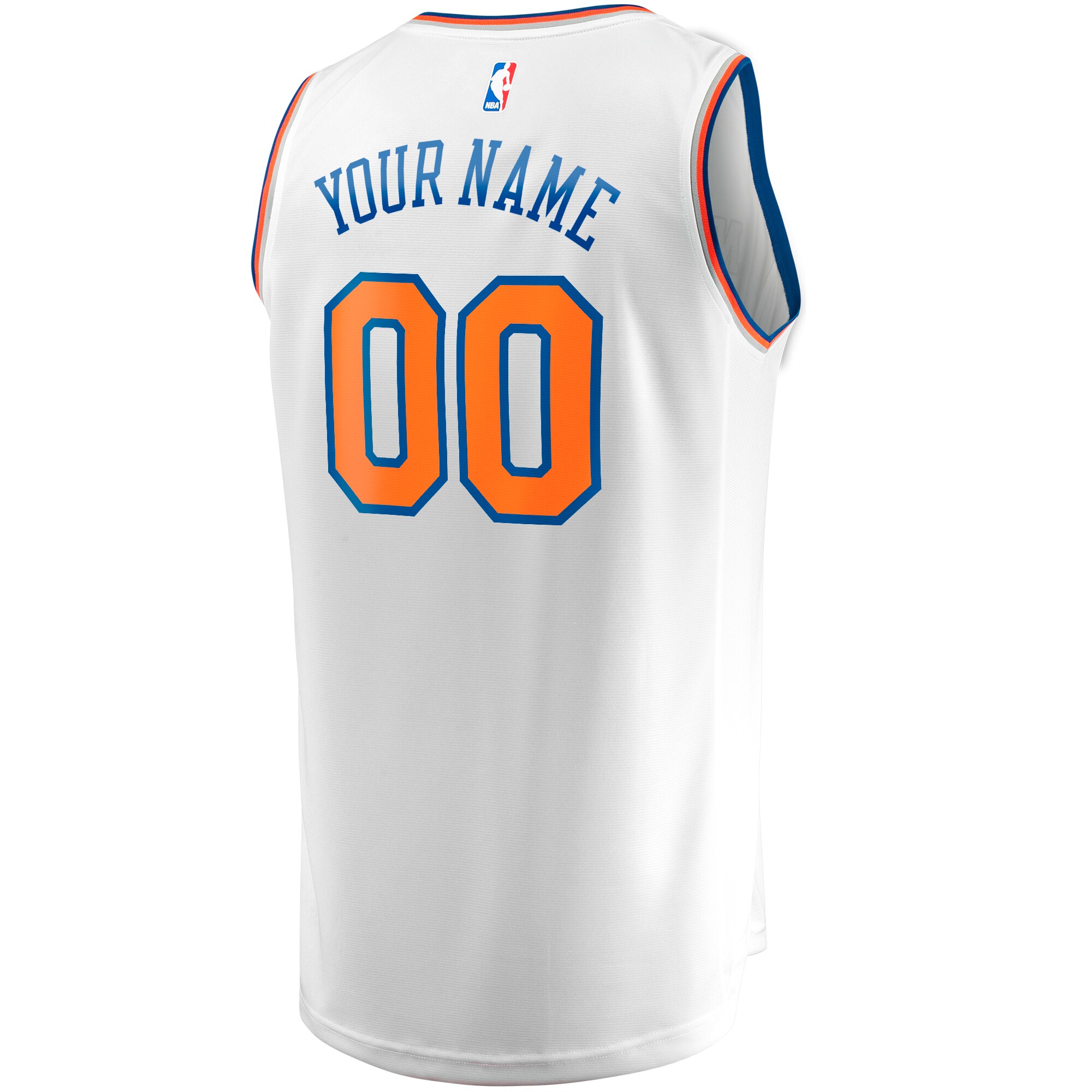 We want fans to celebrate their fandom by customizing and personalizing certain products. For these customizable products, including jerseys, we invite customers to tell us how they would like their preferred name or other text to appear by typing that text into the field indicated. However, just because a customer is able to type proposed customization text into the field and is able to complete the order through the website, not all proposed customization text will be accepted. Please note, Fanatics may reject and cancel any customization order for any reason, including for messages that are deemed offensive or inappropriate. Capture your team's distinct identity when you grab this New York Knicks Fast Break Custom Replica Jersey - Association Edition from Fanatics Branded. It features classic trims and New York Knicks graphics to show who you support. Before you head to the next New York Knicks game, grab this incredible jersey so everyone knows your fandom is on full display.