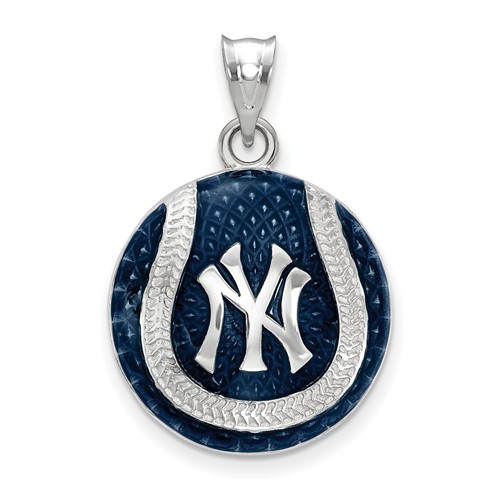 Sterling Silver New York Yankees Enameled Baseball Pendant 3/4in