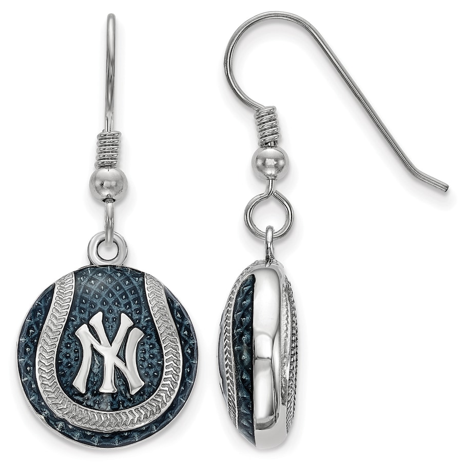 New York Yankees Women's Sterling Silver Enameled Baseball Earrings