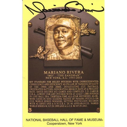 Mariano Rivera New York Yankees Autographed Baseball Hall of Fame Plaque Postcard