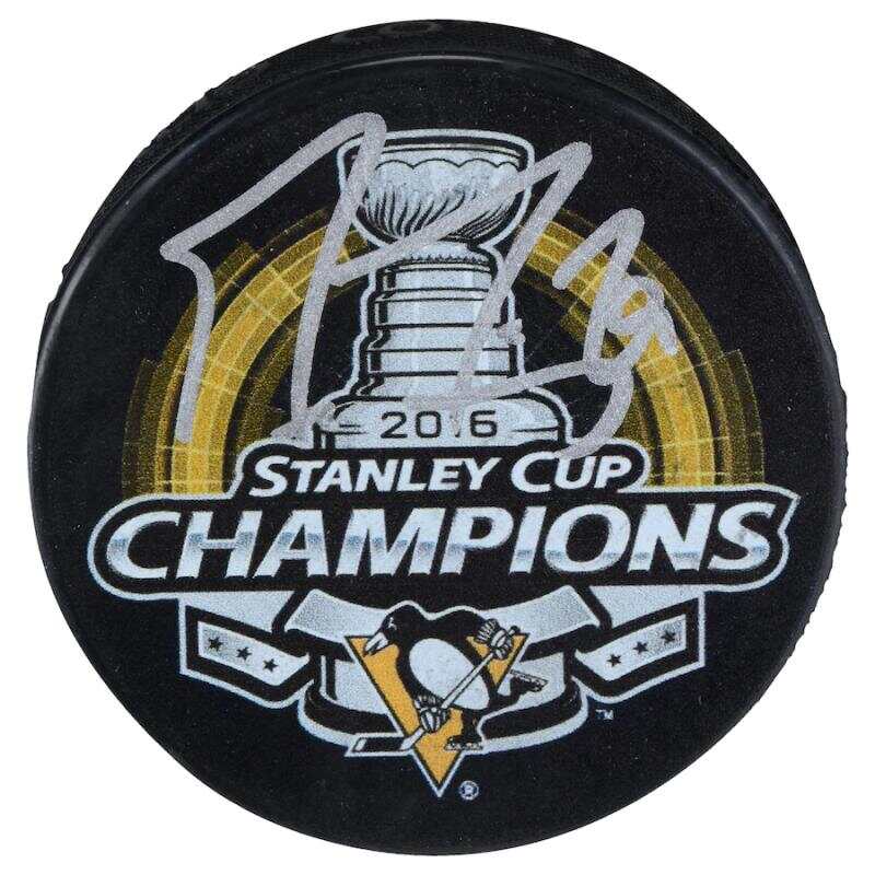Autographed Pittsburgh Penguins Marc-Andre Fleury 2016 Stanley Cup Champions Logo Hockey Puck