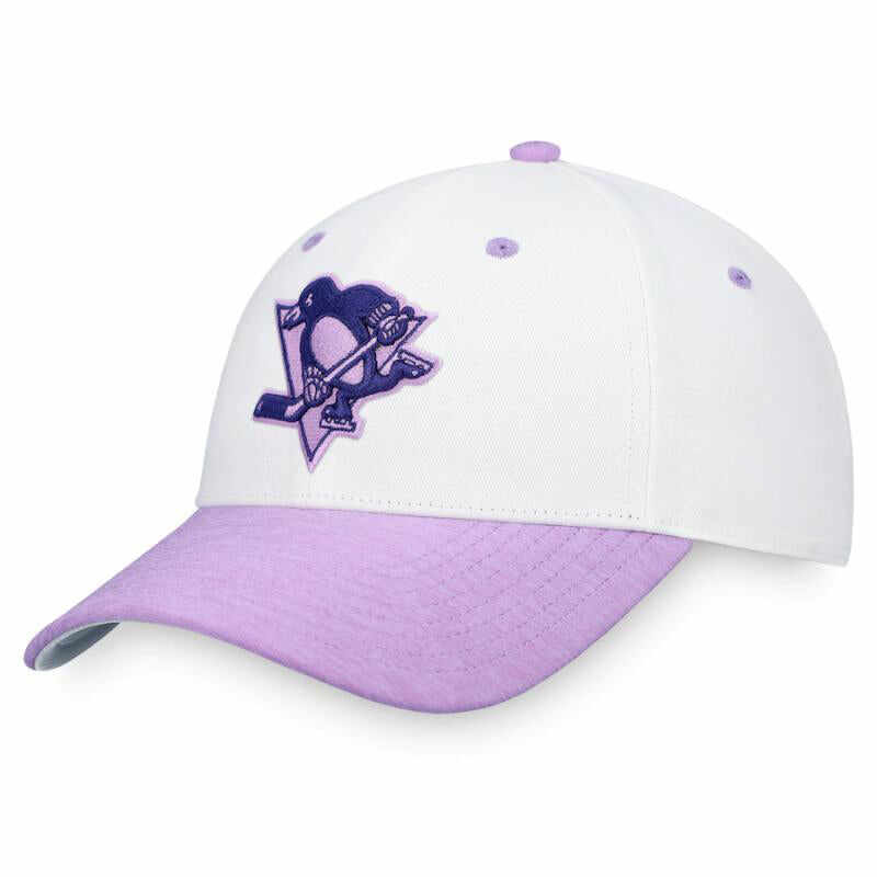 Men's Pittsburgh Penguins White/Purple Authentic Pro Hockey Fights Cancer Snapback Hat