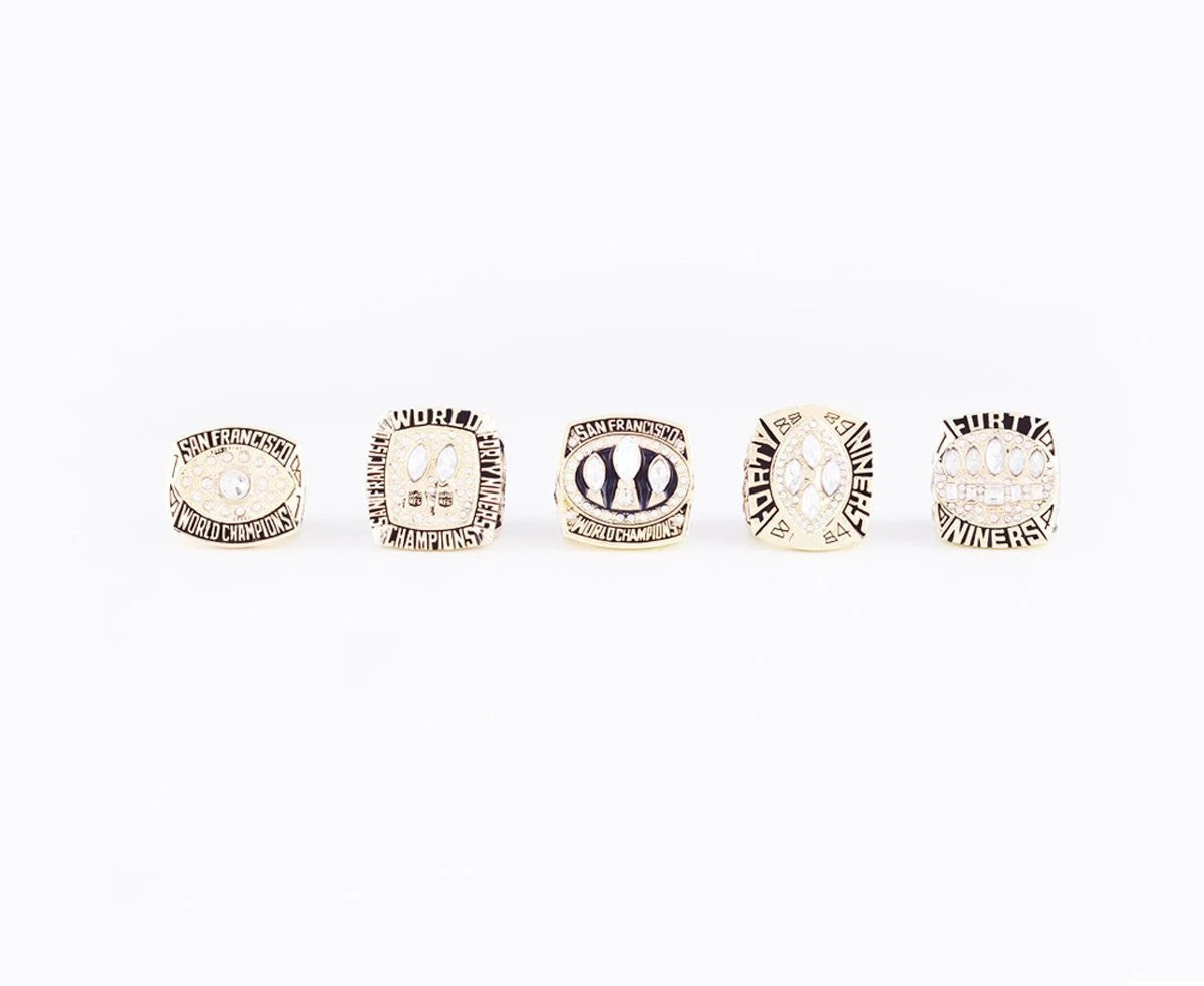 Team: San Francisco 49ersYear: 1989Metal Type: Zinc AlloyMaterial: Cubic ZirconiaSize: 8 to 14