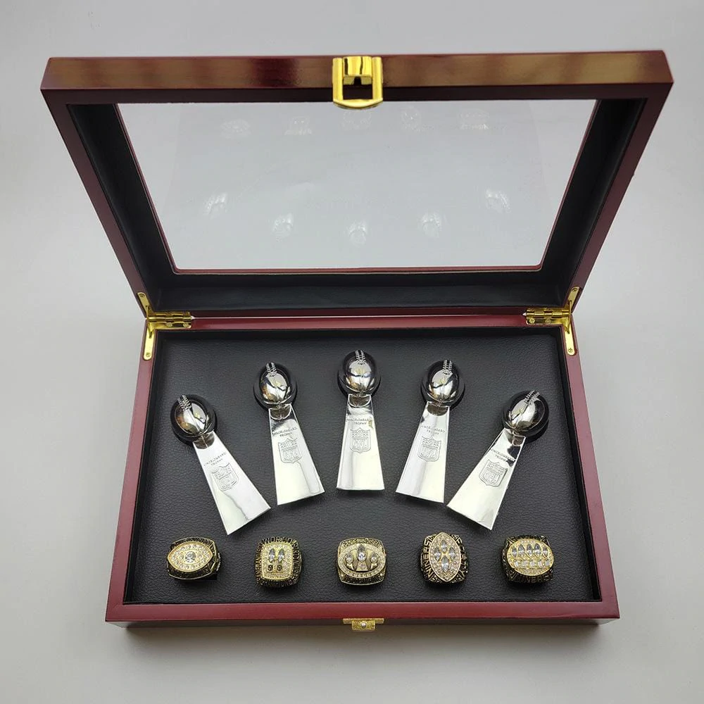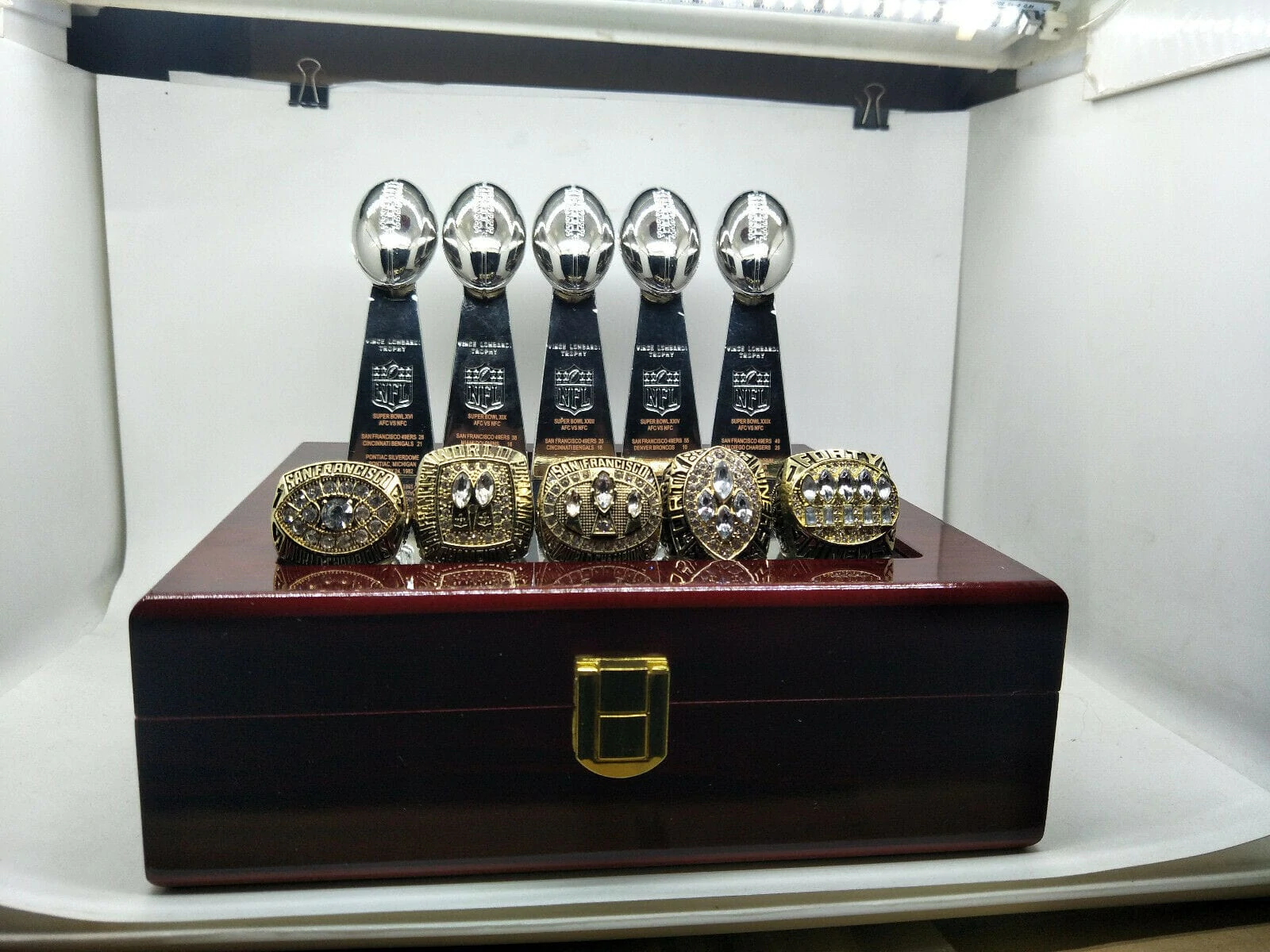 [San Francisco 49ers ]5 Trophys and 5 Pcs Ring Set + Box NFL