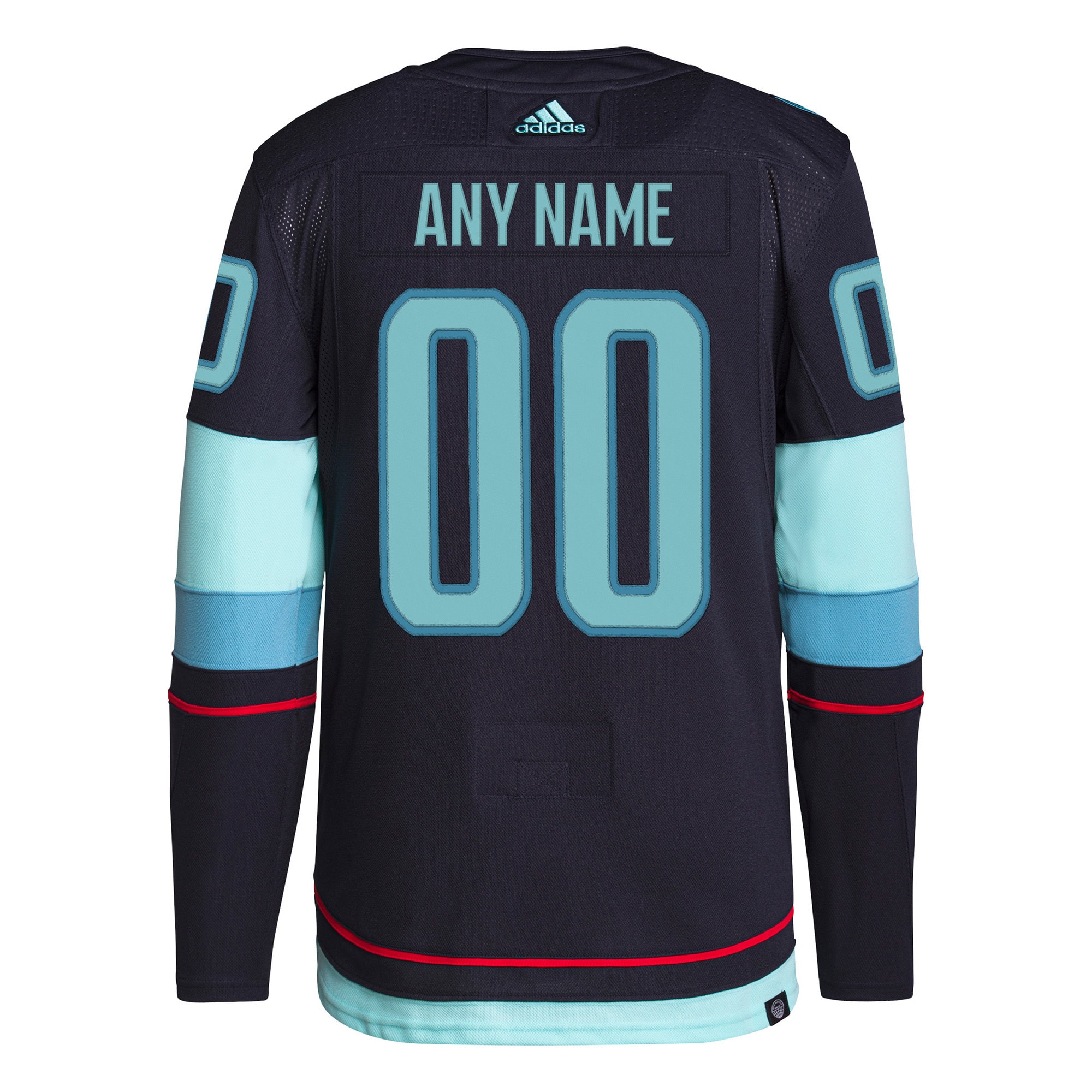 We want fans to celebrate their fandom by customizing and personalizing certain products. For these customizable products, including jerseys, we invite customers to tell us how they would like their preferred name or other text to appear by typing that text into the field indicated. However, just because a customer is able to type proposed customization text into the field and is able to complete the order through the website, not all proposed customization text will be accepted. Please note, Fanatics may reject and cancel any customization order for any reason, including for messages that are deemed offensive or inappropriate. This Seattle Kraken Home Authentic Pro Custom Jersey is a spirited piece to have for game day. Crisp Seattle Kraken graphics match those worn by players on the ice, making you feel like a member of your favorite team. The adidas fabric technology will keep you comfortable while cheering the Seattle Kraken to victory.