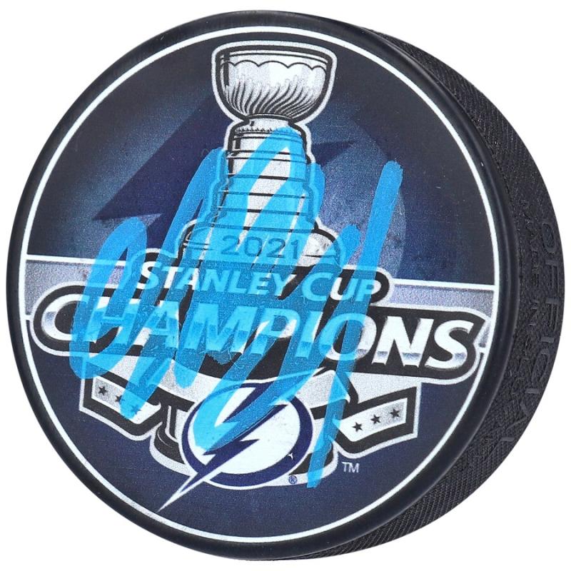 Autographed Tampa Bay Lightning Andrei Vasilevskiy 2021 Stanley Cup Champions Logo Hockey Puck