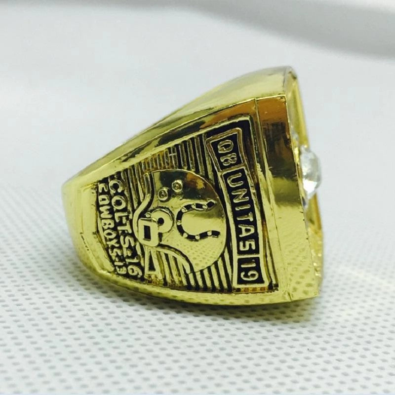 Team: Baltimore ColtsYear: 1970Metal Type: Zinc AlloyMaterial: Cubic ZirconiaSize: 9 to 13