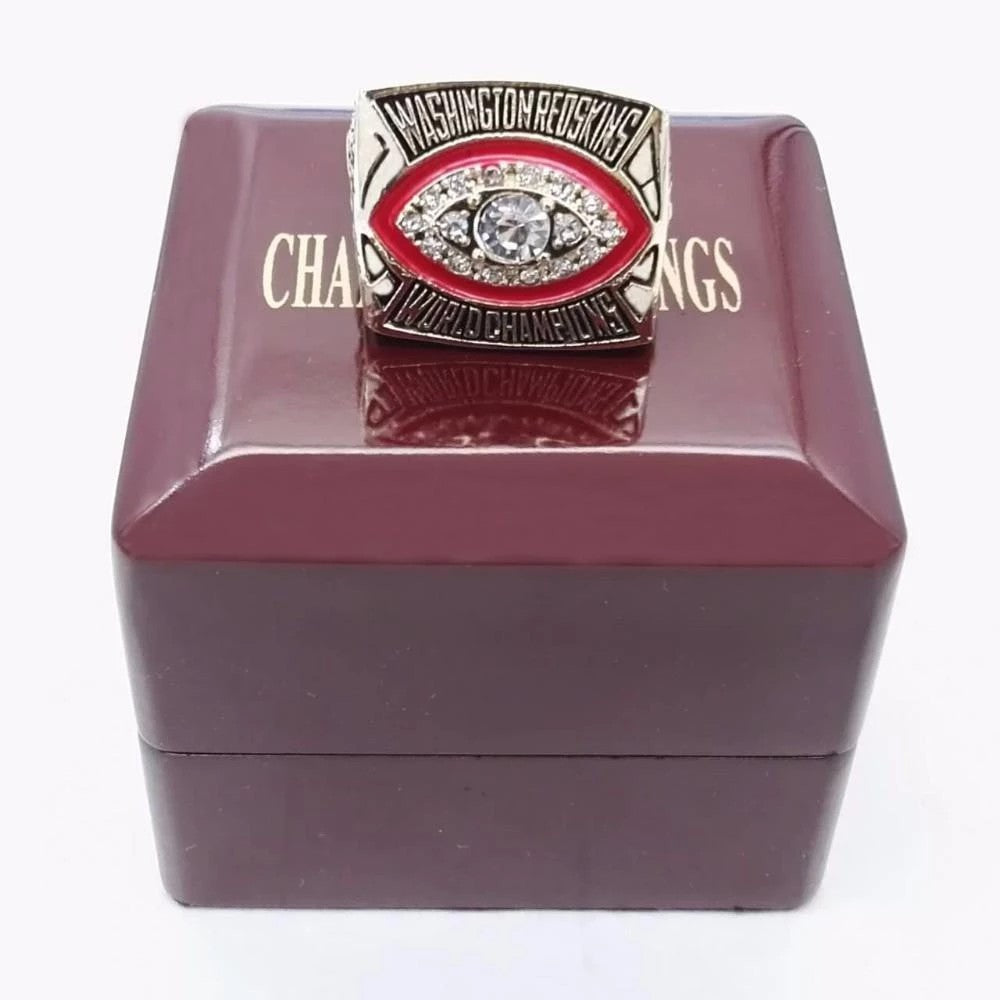 Team: Washington RedskinsYear: 1982Metal Type: Zinc AlloyMaterial: Cubic ZirconiaSize: 8 to 14