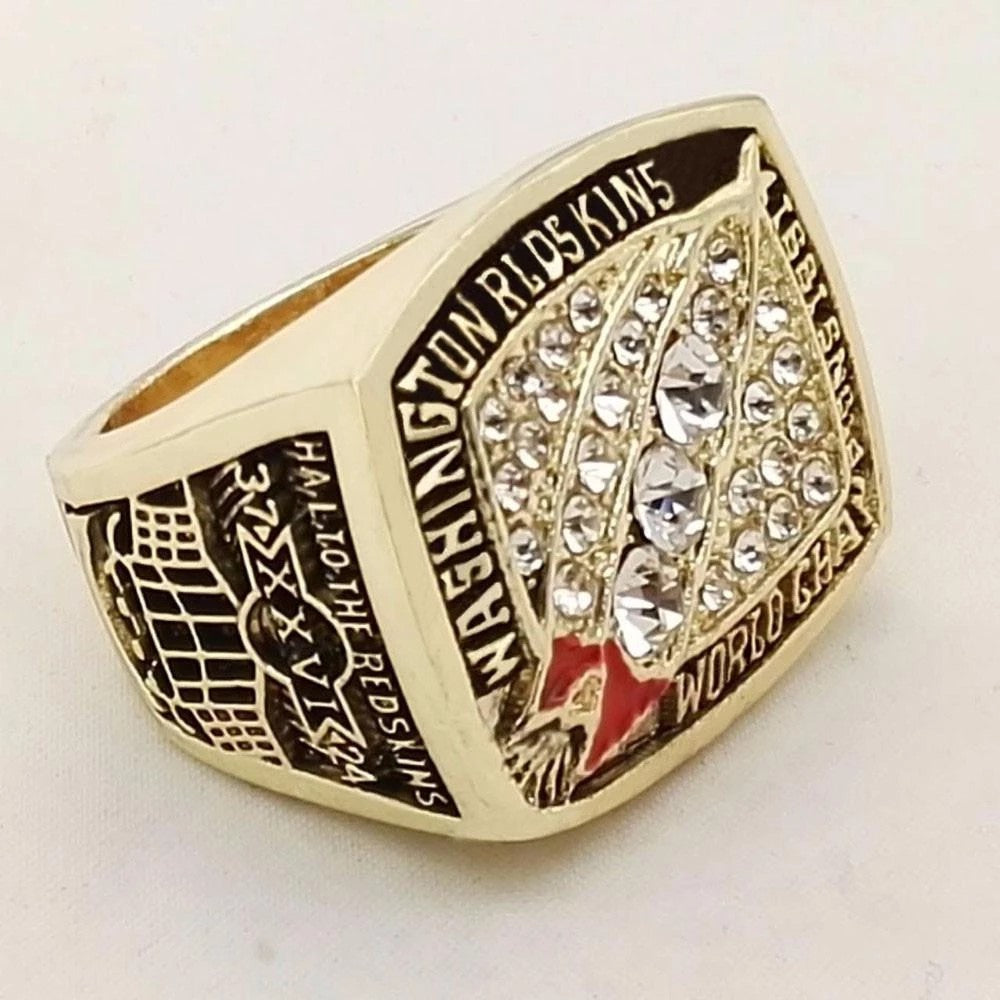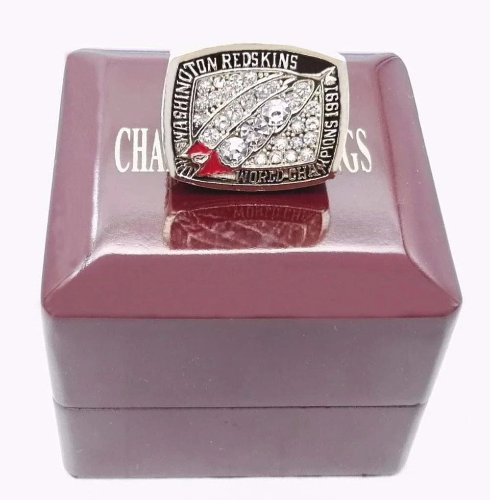 Team: Washington RedskinsYear: 1991Metal Type: Zinc AlloyMaterial: Cubic ZirconiaSize: 8 to 14