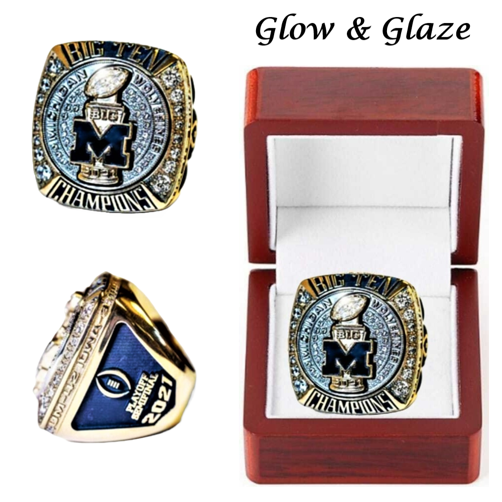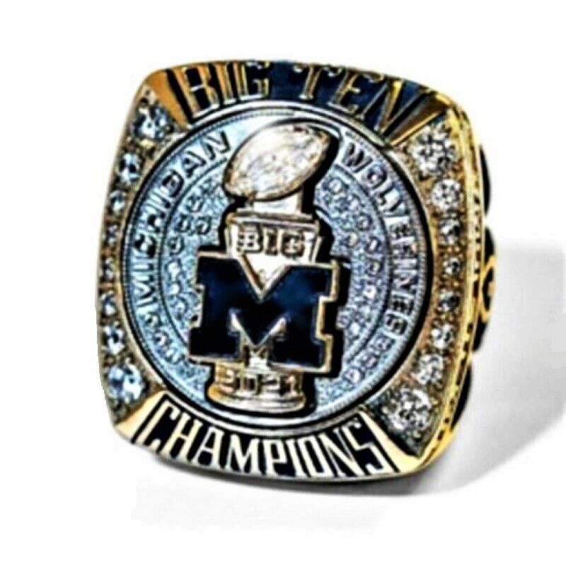 2021 Michigan Wolverines Football Big Ten National Team Ring Wooden Fan Gift NFL